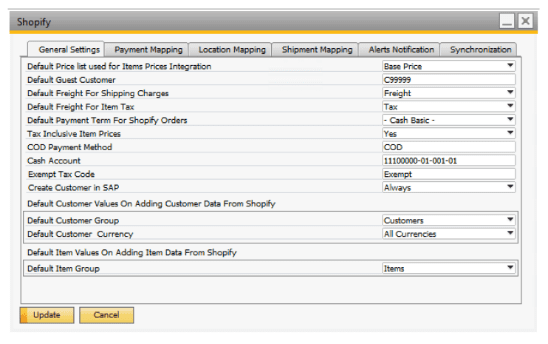 - Check settings for Payment, Locations, Shipment, Alerts, and Synchronization